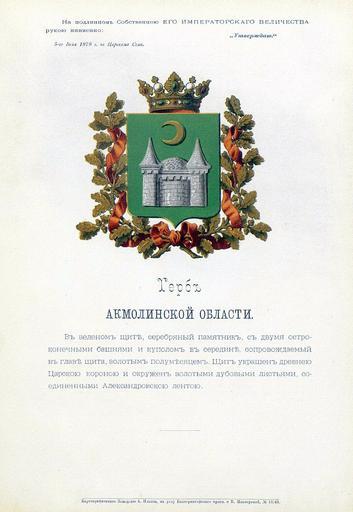 Keywords: Акмолинская область из Бенке.jpg Official Russian Empire coat of arms Akmolinsk Oblast Ге б Российской Импе ии Акмолинской области с официальным описанием в Ге бовнике инисте ства внут енних дел Российской Импе ии издательства Бенке Утве ждён Импе ато ом Все оссийским Александ ом Вто ым в 1878 году Ге бы губе ний и областей Российской Импе ии Отпечатано по аспо яжению минист а внут енних дел Санкт-Пете бу г Ка тог афическое заведение А А Ильина и типог афия инисте ства путей сообщения А Бенке 1880 / Scanned on paper album 1878-07-05 / 1880 published Russian Empire PD-old PD-RusEmpire PD-RU-exempt coats of arms <gallery> File Акмолинская область ВД Бенке jpg File Акмолинская область изд Сукачова JPG File Акмолинская обл 1878 из Винкле а jpg File Coat of Arms of Akmolinsk Province png </gallery> Coats of arms of Akmolinsk Oblast Castles in heraldry 1 crescent Or in heraldry Gerbovnik Benke |