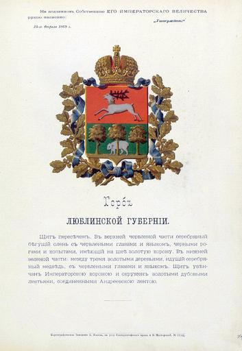 | Keywords: Люблинская губерния из Бенке.jpg Official Russian Empire coat of arms Lublin Governorate Ге б Российской Импе ии Люблинской губе нии с официальным описанием в Ге бовнике Бенке Утве ждён Импе ато ом Все оссийским Александ ом Вто ым Ге бы губе ний и областей Российской Импе ии Отпечатано по аспо яжению минист а внут енних дел Санкт-Пете бу г Ка тог афическое заведение А А Ильина и типог афия инисте ства путей сообщения А Бенке 1880 / Scanned on paper album 1869 / 1880 published Russian Empire PD-old-100 PD-RusEmpire PD-RU-exempt coats of arms <gallery> File Люблинская губ ВД Бенке jpg File Люблинская губе ния изд Сукачова jpg File Coat of Arms of Lublin gubernia Russian empire png </gallery> <references/> Coats of arms of Lublin Governorate Gerbovnik Benke Trees in heraldry Bears in heraldry |