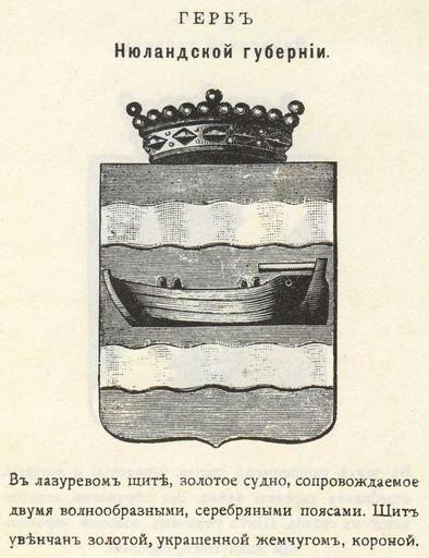 | Keywords: Нюландская губ из Винклера.jpg Official Russian Empire Nuland Governorate coat of arms Ге б юландской губе нии Российской Импе ии Великого Княжества Финляндского с официальным описанием в Ге бовнике Винкле а П П фон-Винкле Ге бы го одов губе ний областей и посадов Российской Импе ии внесенные в Полное Соб ание законов с 1649 по 1900 год Дозволено цензу ою С -Пете бу г 20 Июля 1899 года Издание книгото говца Ив Ив Иванова С -Пете бу г Типог афия И Комелова П яжка д 3 1899 \ Scanned by Vizu 1899 published П П фон Винкле \ Pavel von Vinkler PD-old-100 PD-RusEmpire Gerbovnik Vinklera - Governorate Oblast CoAs Coats of arms of Nuland Governorate Boats in heraldry Coats of arms of Uusimaa |