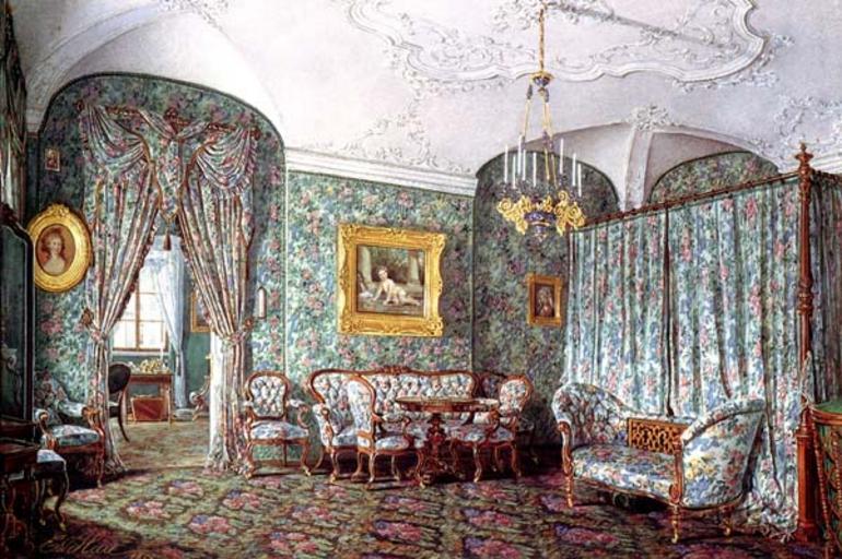 | Keywords: Гау. Спальня Марии Александровны. 1879.jpg Artwork Creator Edward Hau Спальня а ии Александ овны в Большом Гатчинском дво це 1879 Watercolor on paper cm 50 60 ; cm 27 7 40 4 object history credit line accession number http //history-gatchina ru/museum/hau/ User Art-top/Upload art works PD-old-100 DEFAULTSORT Hau Edward 1879 Paintings of the interior of Gatchina Palace Interiors by Eduard Hau 1870s interiors in art 1879 watercolor paintings Bedrooms in art Bedrooms in Russia Watercolor paintings in Russia Watercolor paintings of building interiors 1879 in Gatchina |