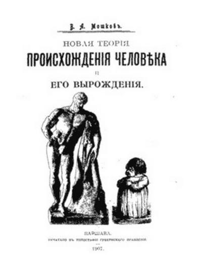 | Keywords: Мошков Новая теория происхождения человека.jpg ru Обложка книги В А ошкова овая тео ия п оисхождения человека и его вы ождения составленная по данным зоологии геологии а хеологии ант опологии этног афии исто ии и статистики Ва шава 1907 год http //paranormal-news ru/news/rossijskij_nostradamus_valentin_moshkov/2010-07-12-2692 author 1907 PD-old Scientists from Russia unidentified field | ||||