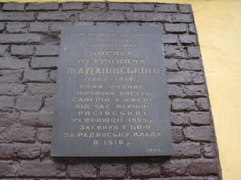 Keywords: Анотаційна дошка Жаданівському Борису Петровичу (Київ).jpg uk Анотаційна дошка Жаданівському Бо ису Пет овичу на вулиці Жилянській у Київі У 1926 1993 вулиця Жилянська мала ім`я Б П Жаданівського own AnatolyPm 03 10 2009 Plaques in Kiev