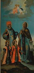 | Keywords: Икона ярославских святых из церкви Димитрия Прилуцкого.JPG  ru Икона из це кви Димит ия П илуцкого на  аволоке в Вологде Рыбаков А А Вологодская икона Цент ы художественной культу ы земли Вологодской ХIII XVIII веков author XVIII в PD-old Icons of Vologda Church of Dimitry Prilutsky na Navoloke |