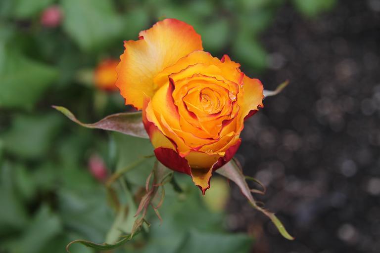 | Keywords: plant flower outdoor depth of field Red blend Hybrid Tea. Registration name: DICobey Exhibition name: Tequila Sunrise Bred by Patrick Dickson (United Kingdom, 1988). Florists Rose, Hybrid Tea.   Yellow and red, red edges.  Mild fragrance.  40 petals.  Medium, full (26-40 petals), cupped bloom form.  Blooms in flushes throughout the season. Red blend Hybrid Tea. Registration name: DICobey Exhibition name: Tequila Sunrise Bred by Patrick Dickson (United Kingdom, 1988). Florists Rose, Hybrid Tea.   Yellow and red, red edges.  Mild fragrance.  40 petals.  Medium, full (26-40 petals), cupped bloom form.  Blooms in flushes throughout the season.  |