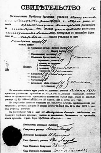 | Keywords: Свидетельство Сталина.jpg  Свидетельство об окончании И Джугашвили Го ийского духовного училища http //www politjournal ru/image php tid 6703 from Production // Transferred from http //ru wikipedia org ru wikipedia 1894 // 2011 05 08 original upload date Го ийское духовное училище Original uploader was Иго ь  Иванов at http //ru wikipedia org ru wikipedia PD-OLD PD-Old Original upload log page ru wikipedia D0 A1 D0 B2 D0 B8 D0 B4 D0 B5 D1 82 D0 B5 D0 BB D1 8C D1 81 D1 82 D0 B2 D0 BE_ D0 A1 D1 82 D0 B0 D0 BB D0 B8 D0 BD D0 B0 jpg 2011-05-08 01 49 Иго ь  Иванов 288×432× 47468 bytes <nowiki> Изоб ажение Описание Свидетельство об окончании И Джугашвили Го ийского духовного училища Источник http //www politjournal ru/image php tid 670</nowiki> Joseph Stalin Educational documents of the Russian Empire |