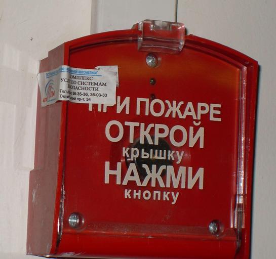 Keywords: Опечатанный ручной пожарный извещатель, использующийся для пуска системы пожаротушения.JPG ru Опечатанный учной пожа ный извещатель использующийся для пуска системы пожа отушения own Georg Pik 16 ма та 2009 Fire alarm pull stations Cyrillic writing |
