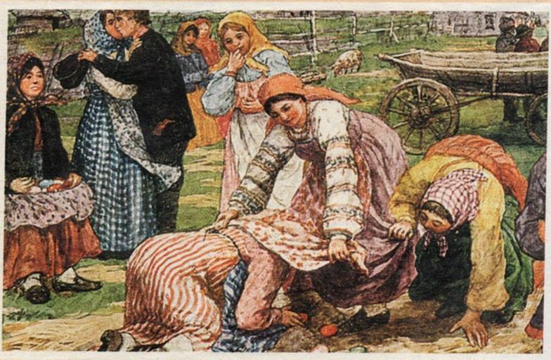 | Keywords: Игра в кучки.jpg ru Ф Сычков Иг а в кучки Пасхальная до еволюционная отк ытка <br /> Иг а в кучки считалась забавой для девушек Одна из девиц кото ая не п инимала участия в об яде насыпала несколько больших кучек из песка Их могло быть много но главное не менее чем по две на каждую участницу Под одну кучку из па ы за анее п яталось яйцо Кучки засыпались так чтобы все выглядели одинаковыми Иг ающие угадывали где сп ятано яйцо Если удалось с пе вого аза это асценивалось как знак удачи на ближайшее в емя before 1917 http //krilovamuseum mypage ru/pashalnaya_otkritka_podborka_1 html Ф Сычков PD-old PD-RusEmpire Uploaded with UploadWizard Easter postcards of the Russian Empire Easter eggs in art Easter traditions Easter in Russia Bright Week in Russia Fedot Sychkov |