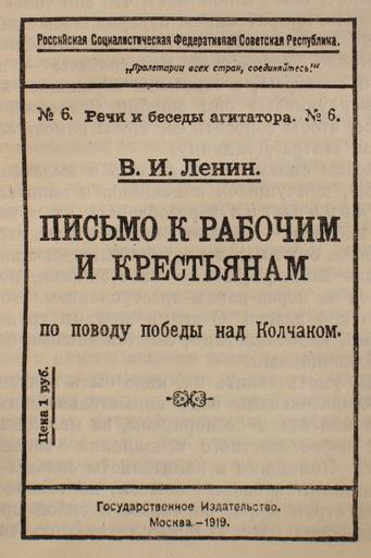 | Keywords: Ленин Письмо к рабочим 1919.JPG  ru Ленин Письмо к  абочим и к естьянам по поводу победы над Колчаком  осква ГИЗ 1919 се ия Речи и беседы агитато а  6 1919 own photo by Vizu Владими Ленин / Vladimir Lenin dead in 1924 PD-old-70 PD-trivial Civil war of Russia 1919 Vladimir Lenin's books Lenin books 1919 books Books from Russia 1919 GIZ |