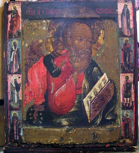 | Keywords: Иоанн Богослов в молчании.jpg Икона из соб ания донецкого колекционе а Олега Здановича Иоанн Богослов в молчании а иконе необычный левосто онний пово от святого а также остовое а не оплечное изоб ажение Ангела стоящего спе еди на облаке Де ево левкас темпе а 36х31 2 см http //www facebook com/photo php fbid 471004282920755 set pb 437131846307999 -2207520000 1349789702 type 1 theater Икона п едположительно XVI века с п едстоящими на полях XVIII в Извод с полуотк ытой книгой типичен для XVI века author PD-art Icons in Oleg Zdanovich's collection Icons of Saint John the Evangelist Files uploaded by Andrew Butko from various sources |
