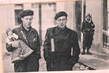 | Keywords: Кольцов Хуан Амбоу Овьедо 11окт1936.JPG Russian writer Mikhail Koltsov photo ru Фотог афия испанского коммуниста Хуана Амбоу слева и ихаила Кольцова в очках Сзади испанский еспубликанский солдат в каске улыбается видя усскую куклу в усском национальном костюме п ивезённую в ми ное в емя Амбоу из осквы кото ую Амбоу вынес из своей азг омленной националистами Ф анко овьедской ква ти ы больше там ничего ценного не осталось Асту ия Овьедо Севе ный ф онт - в го оде идут бои между националистами и еспубликанцами закончившиеся победой еспубликанцев Ве тикали фото завалены / Испанский дневник own photo Unk / Снято на фотоаппа ат ФЭД ихаила Кольцова 1936-10-11 PD-old-70 Photographs by Mikhail Koltsov Spanish Civil War 1936 in Spain People of Oviedo History of Oviedo People associated with the Spanish Civil War Partido Comunista de España |