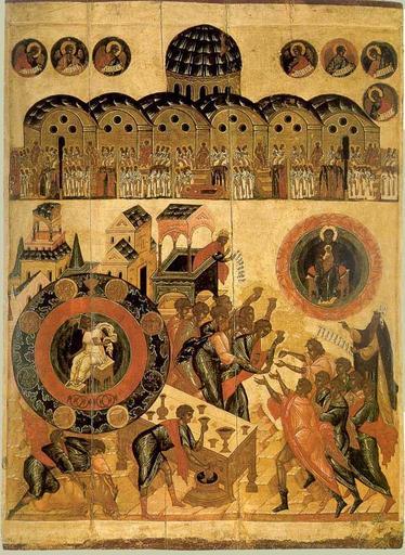 | Keywords: Пир Премудрости.jpg  ru П емуд ость созда Себе дом или Пи П емуд ости  овго од Икона из  ало-Ки иллова Пок овского монасты я Собо Афанасия и Ки илла Александ ийских  аходится в Госуда ственной Т етьяковской гале ее http //www obraz org/index php menu iconography base 2 struct 170 icon_id 1339 author 1-я половина XVI века PD-old-100 16th-century icons of Russia |