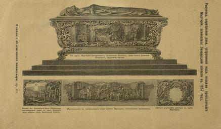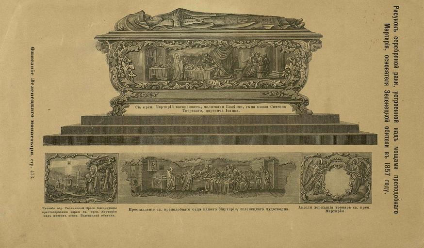 Keywords: Рисунок серебряной раки над мощами Мартирия Зеленецкого.jpg ru Рисунок се еб яной аки уст оенной для мощей п еподобного а ти ия основателя Зеленецкой обители в 1857 году en Rough translation; the subject is well-beyond my vocabulary scope even in Russian Drawing of a silver shrine arranged for the relics of St Martyrius the founder of Zelenetskaya monastery in 1857 Описание Зеленецкого Т оицкого монасты я СПб 1883 Рис 1 author 1883 PD-RusEmpire Icons of saints - M PD-Art