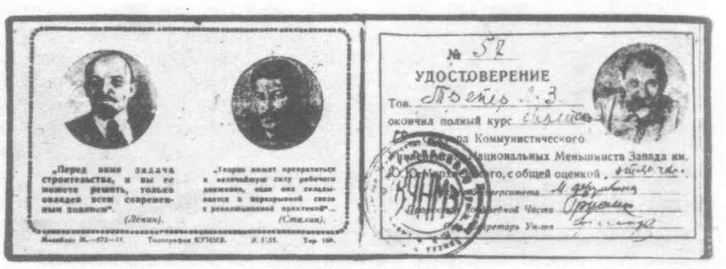 Keywords: Посвідчення КУНМЗ.jpg en certificate of Communist University of the National Minorities of the West uk Посвідчення студента Комуністичного уніве ситету національних меншин Заходу fr Carte d'étudiant de l'Université communiste de l'Occident des minorités nationales 2013-02-18 01 03 35 certificate of Communist University of the National Minorities of the West author PD-old-auto 1930 Uploaded with UploadWizard Comintern sections Comintern |