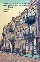 | Keywords: Урадавая жаночая гімназія, вул. Праабражэнская.jpg У адавая жаночая гімназія Знаходзілася на П ааб ажэнскай вуліцы Валада скага В Целеш - альбом Га ады Бела усі на ста ых паштоўках енск Бела усь 2001 http //www oldmensk net/publ/vulicy/valadarskaga/vul_valadarskaga/39-1-0-24 century 20 PD-old Valadarskaha street Minsk |