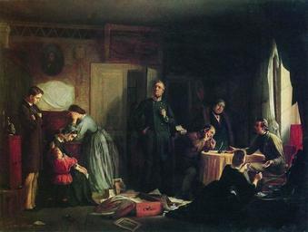 | Keywords: Кредитор описывает имущество вдовы.jpg ru К едито описывает имущество вдовы Жан жан овая сцена ап авление Реализм Год 1862 Тип объекта Ка тина естонахождение ациональный художественный музей Республики Бела усь инск ате иалы холст масло Разме ы 84 х 111 см 1862 http //vsdn ru/museum/catalogue/exhibit9485 htm Creator Firs Zhuravlev Custom license marker 2013 03 29 PD-old-100 Uploaded with UploadWizard 1862 paintings from Russia 19th-century paintings in the National Arts Museum of the Republic of Belarus Firs Zhuravlev |