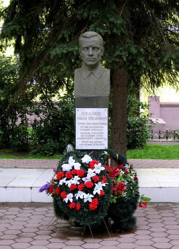 | Keywords: Иванов бюст полностью.jpg Бюст Ге оя Советского Союза лётчика Ивану Ивановичу Иванову 1909-1941 на Аллее ге оев во Ф язино A bust of the Hero of the Soviet Union pilot Ivan Ivanov 1909-1941 in Fryazino's Alley of Heroes own 11 04 14 August 2007 UTC Max<font size +1 >S</font>em Busts in Russia Statues of soldiers Bronze busts in Russia Busts of men Fryazino Ivan Ivanovich Ivanov |