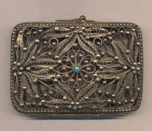 | Keywords: Кашалёк Брэсцкі абласны краязнаўчы музей.jpg  be  узей Б эсцкі абласны к аязнаўчы музей Тып  эчавыя помнікі Від дэка атыўна-п ыкладное мастацтва П адметнае імя кашалёк  атэ ыялы с эб а; бі уза; Тэхналогіі ства эння штампоўка; зе нь; залачэнне; філіг ань; Дата ства эння канец ХIХ-пачатак ХХ ст  есца ства эння Расія Паме ы 50 х 70 мм beg ХIХ-end ХХ http //dkmf by/detail-author-item html author_item_id 73182 author Custom license marker 2013 04 07 PD-old Uploaded with UploadWizard 19th-century works in Belarus Brest Regional Homeland Museum Wallets |