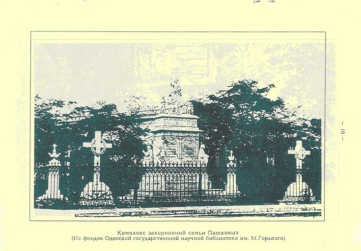 | Keywords: Могили Пашкових.jpg Комплекс поховань сім'ї Пашкових Одеса Пе ше х истиянський цвинта before 1929 Одеська національна наукова бібліотека імені Го ького author PD-old Original upload log File was transfered from Ukrainian Wikipedia using UWCTransferBot v 1 0 based on Chris G's http //toolserver org/~chris/highlight php d chris/classes/ f botclasses php botclasses framework uk wikipedia D0 9C D0 BE D0 B3 D0 B8 D0 BB D0 B8+ D0 9F D0 B0 D1 88 D0 BA D0 BE D0 B2 D0 B8 D1 85 jpg 2013-05-11 21 31 Seva Seva 561×391×8 78049 bytes <nowiki> Зоб аження азва Комплекс поховань сім'ї Пашкових Опис Одеса Пе ше х истиянський цвинта Авто Дже ело Одеська де жавна наукова бі </nowiki> Historical images of 1st Christian Cemetery Graves in Odessa |