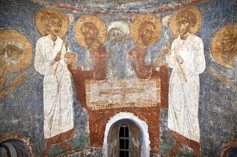 | Keywords: Роспісы Спаса-Праабражэнскай царквы ў Полацку 02.jpg  be Роспісы Спаса-П ааб ажэнскай ца квы ў Полацку 12th http //polotsk museum by/files/freski/Page3 html невядомы PD-Art Uploaded with UploadWizard Frescos in the Church of the Transfiguration in Polack |