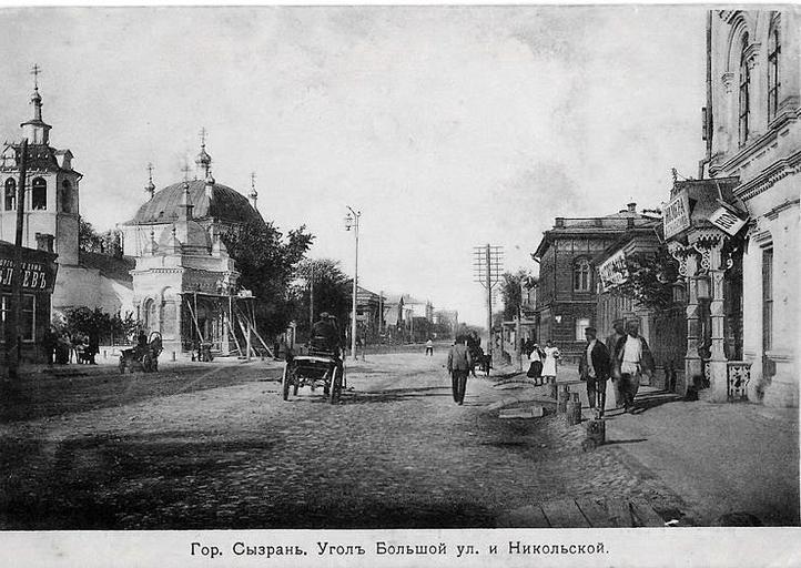 Keywords: Угол ул. Большой и Никольской.jpg Угол ул Большой и икольской до пожа а 1906г before 1920 http //old syzran ru/photone/10 jpg author PD-old-70 Old photos of Syzran Files uploaded by ShinePhantom from various sources