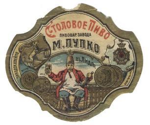 | Keywords: Этыкетка піваварнага завода М.Пупко ў Лідзе.jpg  be Этыкетка півава нага завода  Пупко ў Лідзе Канец ХІХ  пачатак ХХ ст http //histmuseum by/be/new_page_5_3_15999/ - PD-Art Uploaded with UploadWizard Beers of Belarus Food labels National Historical Museum of Belarus |