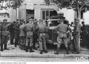 | Keywords: Немцы пад Ружанай — Niemcy pad Ružanaj 03.jpg   ямецкія жаўне ы слухаюць навіны з аўтамабільнага гучнагава ыцеля ў ваколіцах w Ружаны be-x-old Żołnierze niemieccy słuchają komunikatów z głośnika samochodowego w okolicy miejscowości Różana 1941-06 http //www audiovis nac gov pl/obraz/2645/d9f52b0531226ad646db78c7f991d76f/ Narodowe Archiwum Cyfrowe Kessler PD-old History of Ružany Pružany rajon in World War II Black and white photographs of military people in uniform Uploaded with UploadWizard |