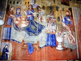 | Keywords: Фреска од Св. Богородица Побушка 01.jpg  mk Ф ески во Ц квата Св Бого одица во Побушкиот манасти скопско en Fresco in the Theotokos Church in Pobožje Macedonia http //alexandro1 blog mk/2010/08/06/109/  анасти Света Бого одица Побожје century 15 author PD-Macedonia PD-old Church of the Theotokos Pobožje |