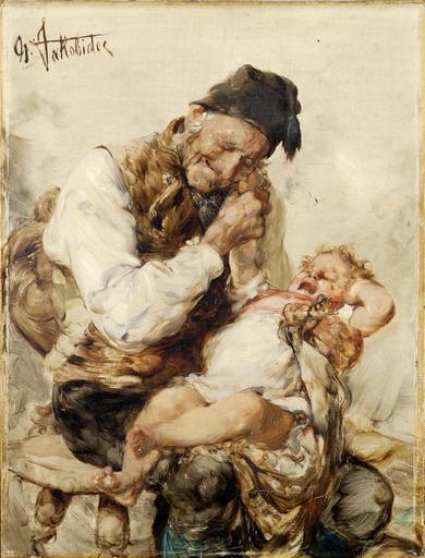 Keywords: Γεώργιος Ιακωβίδης - Ο Κακός Εγγονός (μετά το 1884).jpg Artwork creator Georgios Jakobides 1884 oil canvas cm 38 5 30 accession number object history Private Collection Athens exhibition history credit line G Jakobides upper left signature http //www bonhams com/auctions/21766/lot/11/ html Bonhams London 9 April 2014 lot 11 PD-old-auto-1923 1932 DEFAULTSORT Georgios Jakobides; Naughty grandson; Bonhams 2014 Georgios Jakobides Grandparents Grandfathers in art Paintings of babies Crying in art Images from Bonhams |