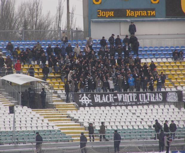 | Keywords: Сектор ультрас Зорі Луганськ.jpg de Sektor der Sorja-Ultras im Awanhard-Stadion Luhansk uk Секто ульт ас Зо і Луганськ на стадіоні Аванга д own PavloFriend 2010-03-06 Avanhard Stadium Luhansk Association football supporters of Ukraine Ultras 2010 in Luhansk |