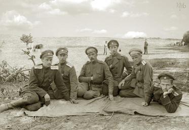 | Keywords: У деревни Свинюхи сентябрь 1916.jpg ru Кавале га ды ко нет Г Г Раух и п апо щик С П Родзянко лейб-еге я капитан В Сиве с и штабс-капитан фон В В отбек кавале га д п апо щик Пет ово-Соловово лейб-еге ь подпо учик В Л Ке бе У де Свинюхи Галиция сентяб ь 1916 г собственный а хив Копытов Гео гий 1916 PD-old Chevaliers Gardes regiment 1916 in Russia |