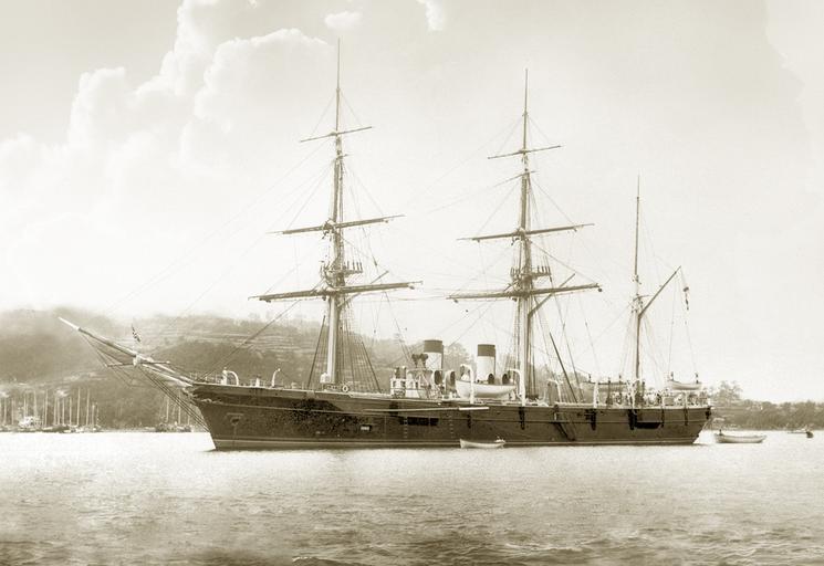 Keywords: Корвет Витязь в на Дальнем Востоке.jpg ru Ко вет Витязь на Дальнем Востоке собственный а хив Копытов Гео гий 1886 1888 PD-old Vityaz ship 1886