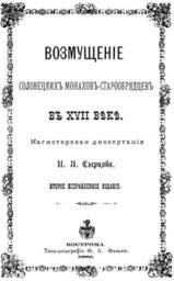 | Keywords: Возмущение соловецких монахов-старообрядцев в XVII веке.png ru Титульный лист книги Иоанна Яковлевича Сы цова Возмущение соловецких монахов-ста ооб ядцев в XVII веке Кост ома типо-лит Ф А Фальк 1888 обл 1889 2015-01-18 http //rutracker org/forum/viewtopic php t 4265355 - other versions PD-old-70-1923 Uploaded with UploadWizard Religion in the Russian Empire | ||||