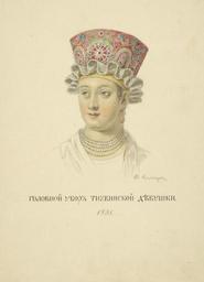| Keywords: Солнцев Головной убор тихвинской девушки 1831.jpg ru Головной убо тихвинской девушки Ф Г Солнцев «Одежды Русского госуда ства» 1831 https //vk com/album-43310606_170289551 Creator Fedor Solntsev other versions Custom license marker 2015 02 08 PD-old-100 Clothes Of Russian Country - Folk clothing Russian costumes of Novgorod Governorate Uploaded with UploadWizard Venets headgear | ||||