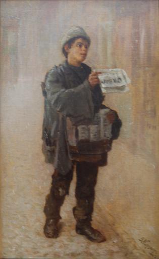 Keywords: Я. Кругер. Газетчык.JPG be Газетчык Палатно на ÐºÐ°Ñ Ð´Ð¾Ð½Ðµ алей 1907 own photo Jankieĺ Kruhier Custom license marker 2013 04 02 PD-Belarus Uploaded with UploadWizard 1907 paintings from Russia 20th-century portrait paintings of boys in the National Arts Museum of the Republic of Belarus Paintings by Jankieĺ Kruhier 20th-century oil paintings of men at full length Oil paintings of boys |