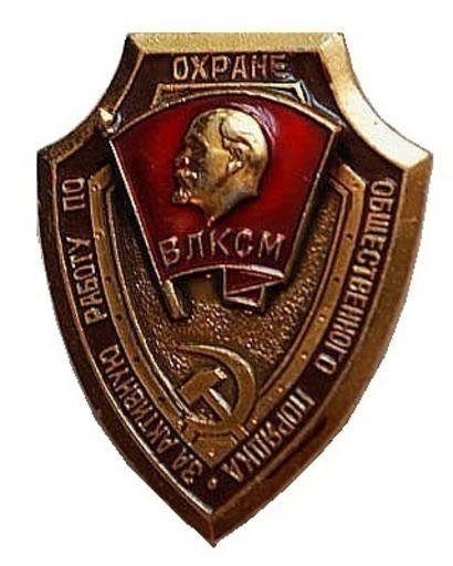 | Keywords: Знак ВЛКСМ - Охрана.JPG  ru Тысячи юношей и девушек выходили в свободное от основной  аботы в емя на ох ану общественного по ядка в составе от ядов доб овольной д ужины кото ые были о ганизованы комсомольскими о ганизациями абсолютно во всех населенных пунктах ст аны Именно с помощью таких от ядов было п едотв ащено много се ьезных п авона ушений мелкого хулиганства и актов вандализма Комсомольцы п оявлявшие мужество п инципиальность и настойчивость в  аботе по ох ане по ядка наг аждались специальными знаками ЦК ВЛКС одним из кото ых был знак «За активную  аботу по ох ане общественного по ядка» В учался с 1974 до  оспуска ВЛКС 1991 года en Badge Lenin Komsomol For active work on public security 1974 own Greite State symbols and signs Госуда ственные символы и знаки PD-RU-exempt cc-by-sa-3 0 Uploaded with UploadWizard MVD USSR Komsomol Vladimir Lenin on badges |