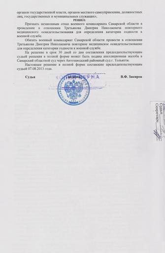Keywords: Решение суда по делу Военно-врачебной экспертизе (8).jpeg ru Решение суда по делу Военно-в ачебной экспе тизе СУД Обязывает Военкомат нап авить Г ажданина п ебывающего в запасе на повто ное медицинское освидетельствование для п охождения службы в силовых ведомствах en The decision of a Russian court in the case of Military-medical examination The COURT requires the military enlistment office to send abiding Citizen in reserve for a repeated medical examination to the services of the Russian security agencies 2013-07-31 own Artur Pirojkov The Official Document Of The Russian Court 100px 100px 100px 100px 100px 100px 100px 130px PD-RU-exempt Trial decision on Military Health Expertise in Russia 1