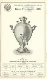 Keywords: Прейскурант самоварной фабрики В.С Баташева 23.jpg П ейску ант самова ной фаб ики В С Баташева < 1917 https //fotki yandex ru/users/humus777/album/379238/ not specified PD-RusEmpire Prices of Batashev's samovar factory