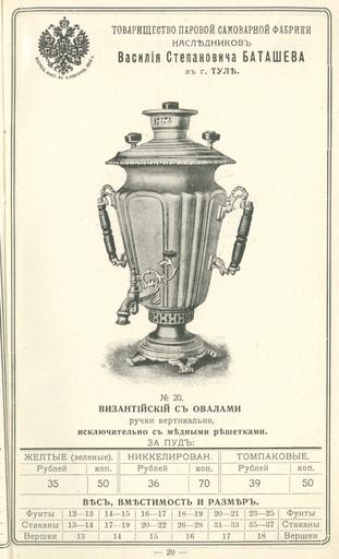 Keywords: Прейскурант самоварной фабрики В.С Баташева 10.jpg П ейску ант самова ной фаб ики В С Баташева < 1917 https //fotki yandex ru/users/humus777/album/379238/ not specified PD-RusEmpire Prices of Batashev's samovar factory