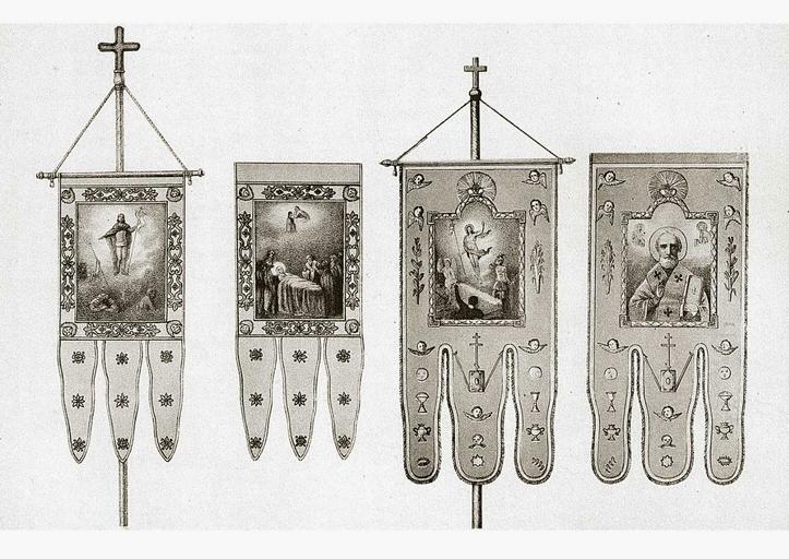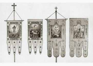 | Keywords: Две хоругви Московского ополчения из церкви Спаса Преображения Господня в Спасской 1812.jpg  Two banners Moscow militia of the Church of the Transfiguration of the Lord in the Saviour Engraving AI Vilborg II floor XIX century Две хо угви  осковского ополчения из це кви Спаса П еоб ажения Господня в Спасской Г авю а А И Вильбо г II пол XIX в 1812 http //pro-vladimir livejournal com/270836 html unknown other versions insignia PD-RusEmpire Flags of the Moscow Militia Drawings of militia flags of Russia |