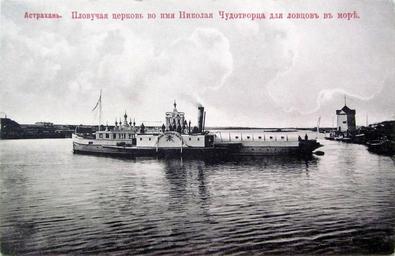 Keywords: Плавучая церковь во имя Николая Чудотворца.jpg ru 40 Плавучая це ковь во имя ик Чудотво ца для ловцов в мо е Аст ахань Бочка ев И фотог аф before 1917 https //img-fotki yandex ru/get/4411/97833783 da7/0_137170_e780d85f_XXXL jpg Бочка ев И other versions Custom license marker 2016 10 15 PD-RusEmpire Floating church of St Nicholas |