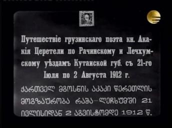 | Keywords: Путешествие Акакия Церетели в Рача-Лечхуми.jpg ru Кад из фильма 1912 года Путешествие Акакия Це етели в Рача-Лечхуми აკაკი წერეთლის მ გზაურ ბა რაჭა-ლეჩხუმში 1912 http //movie douban com/subject/5975230/ Василий Амашукели other versions Custom license marker 2016 02 12 PD-old-70-1923 Films of Georgia |