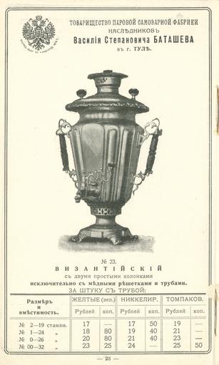Keywords: Прейскурант самоварной фабрики В.С Баташева 13.jpg П ейску ант самова ной фаб ики В С Баташева < 1917 https //fotki yandex ru/users/humus777/album/379238/ not specified PD-RusEmpire Prices of Batashev's samovar factory