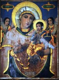 | Keywords: Богородица Барешански манастир.jpg  mk П естолна икона на Бого одица со Исус во ц квата Св  е ку иј во битолско Ба ешани from 1853 https //issuu com/opstinabt/docs/katalog_web_2 author other versions PD-Art Anonymous-EU PD-Macedonia St Mercurius Church Barešani Icons of the Republic of Macedonia |
