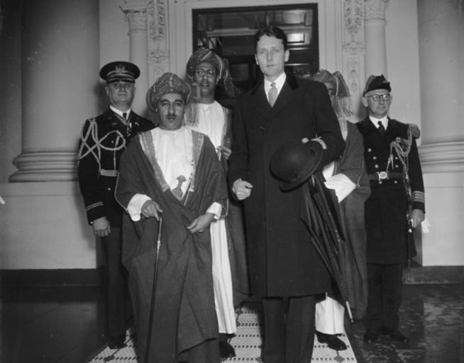 | Keywords: سعيد بن تيمور آل بو سعيد.jpg en سعيد بن تيمور آل بو سعيد en Title The Sultan of Muscat Oman Wayyid Said Bin Taimur Bin Faisal at White House With Stanley Woodward asst chief of the Div of Protocol State Dept Medium 1 negative glass ; 4 x 5 in or smaller Call Number/Physical Location LC-H22-D- 10016-X P P Source Collection Harris Ewing Collection Library of Congress Repository Library of Congress Prints and Photographs Division Washington D C 20540 USA http //hdl loc gov/loc pnp/pp print Digital Id hec 29147 //hdl loc gov/loc pnp/hec 29147 Control Number hec2009015844 Reproduction Number LC-DIG-hec-29147 digital file from original negative Rights Advisory No known restrictions on publication Online Format image 03-03-1938 https //www loc gov/item/hec2009015844/ Harris Ewing photographer other versions PD-US-Gov Oman |