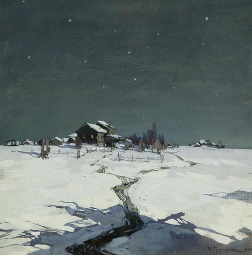 | Keywords: Михаил М. Гужавин - Зимняя ночь (1917).jpg  Mikhail Markelovich Guzhavin 1888-1931  ихаил  а келович Гужавин 1888-1931 1917 gouache paper cm 23 5 23 5 accession number object history credit line exhibition history  Гужавин 1917 ~ lr signature / date http //www arcadja com/auctions/de/private/guzhavin_mikhail_markelovich/kunstwerken/314253/0/ rvn 6 Shapiro Auctions New York 16 04 2011 lot 239 via ARCADJA auction results PD-old-auto-1923 1931 DEFAULTSORT Guzhavin Mikhail Mikhail Markelovich Guzhavin Winter in art 1910s landscape paintings |