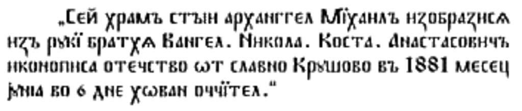 | Keywords: Свети Архангел Михаил Ресава ктиторски надпис.gif  en Ктито ски надпис в Свети А хангел  ихаил в Ресава 1881 http //www cdnh edu mk/multimedija2006/Kavadarci_1/Kavadarci/crkvi/arhangel_mihail_resava htm Вангел  икола и Коста Атанасови other versions Custom license marker 2016 05 21 PD-old Churches in the Republic of Macedonia |