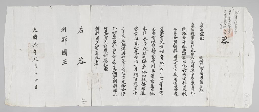 | Keywords: 조선-청 외교문서(자문) 096.jpg 고종 17년 1880 9월 16 에 청국 예 에 조선국왕에게 보내 온 문 금년 동계 통 10월 1 에 12월까 내성 內城 협령 協領 연수 壽 를 파견하여 괄하게 다고 알리는 내용 다 2016-07-18 http //www nl go kr/nl/search/SearchDetail nl category_code ct service KOLIS vdkvgwkey 1130049 colltype DAN_OLD place_code_info 172 place_name_info EB 94 94 EC A7 80 ED 84 B8 EC 97 B4 EB 9E 8C EC 8B A4 manage_code MA shape_code B refLoc null category srchFlag Y h_kwd E5 8F A4 E6 9C 9D51- EB 8B A428-134 lic_yn N mat_code RB 국립중앙도 조선국왕 청국예 other versions PD-Art Books from National Library of Korea Books from Korea 1880 in Relations of the Joseon Dynasty and the Qing Dynasty |