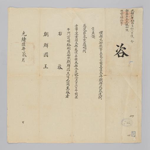 | Keywords: 조선-청 외교문서(자문) 097.jpg 고종 17년 1880 2월에 청국 예 에 조선국왕에게 보내 온 문 조선에 사 사 겸 동 사 파견 사신들에게 2월 13 오각에 오문 午 紫禁城 정문 말함 앞에 에 따 상 반사하 알리는 내용 다 2016-07-18 http //www nl go kr/nl/search/SearchDetail nl category_code ct service KOLIS vdkvgwkey 1130067 colltype DAN_OLD place_code_info 172 place_name_info EB 94 94 EC A7 80 ED 84 B8 EC 97 B4 EB 9E 8C EC 8B A4 manage_code MA shape_code B refLoc null category srchFlag Y h_kwd E5 8F A4 E6 9C 9D51- EB 8B A428-135 lic_yn N mat_code RB 국립중앙도 조선국왕 청국예 other versions PD-Art Books from National Library of Korea Books from Korea 1880 in Relations of the Joseon Dynasty and the Qing Dynasty |