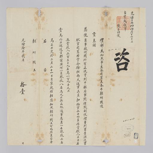 | Keywords: 조선-청 외교문서(자문) 140.jpg 고종 21년 1884 2월 11 에 청국 예 에 조선국왕에게 보내 온 문 조선에 파견 진공 겸 사 사 정사 민종묵 등 사신 행 마치고 달 21 에 북경에 다고 알리는 내용 다 2016-07-18 http //www nl go kr/nl/search/SearchDetail nl category_code ct service KOLIS vdkvgwkey 1130154 colltype DAN_OLD place_code_info 172 place_name_info EB 94 94 EC A7 80 ED 84 B8 EC 97 B4 EB 9E 8C EC 8B A4 manage_code MA shape_code B refLoc null category srchFlag Y h_kwd E5 8F A4 E6 9C 9D51- EB 8B A428-205 lic_yn N mat_code RB 국립중앙도 조선국왕 청국예 other versions PD-Art Books from National Library of Korea Books from Korea 1884 in Relations of the Joseon Dynasty and the Qing Dynasty |