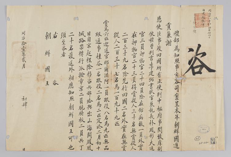 | Keywords: 조선-청 외교문서(자문) 203.jpg 고종 9년 1872 2월 4 에 청국 예 에 조선국왕에게 보내 온 문 조선에 파견 진공사 겸 사 사 온 행 마치고 4월초 4 에 북경에 하 다고 알리는 내용 다 2016-07-19 http //www nl go kr/nl/search/SearchDetail nl category_code ct service KOLIS vdkvgwkey 1130386 colltype DAN_OLD place_code_info 172 place_name_info EB 94 94 EC A7 80 ED 84 B8 EC 97 B4 EB 9E 8C EC 8B A4 manage_code MA shape_code B refLoc null category srchFlag Y h_kwd E5 8F A4 E6 9C 9D51- EB 8B A428-280 lic_yn N mat_code RB 국립중앙도 조선국왕 청국예 other versions PD-Art Books from National Library of Korea Books from Korea 1872 in Relations of the Joseon Dynasty and the Qing Dynasty |